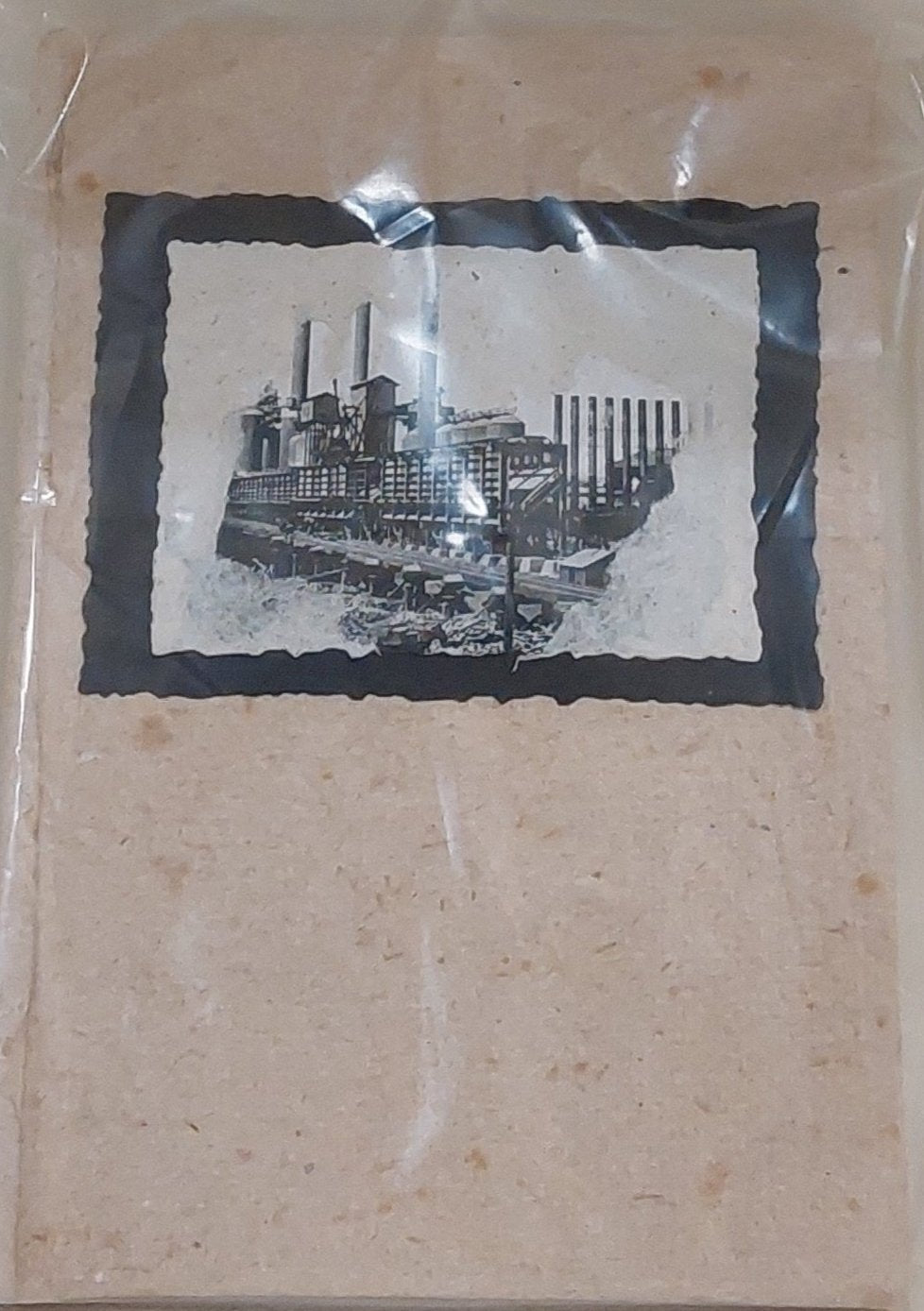 Handmade notebook crafted by Pueblo Deversified Industries with image of our iconic stacks in a black rectange on front
